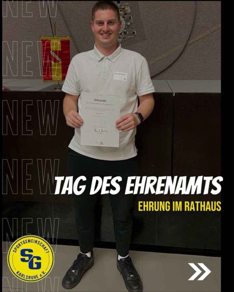 Am 05. Dezember werden jährlich Ehrenamtliche in ganz Deutschland für Ihr Engagement gewürdigt und geehrt. Wir sind glücklich, dass die Stadt Karlsruhe Robins Arbeit genauso wertvoll einschätzt, wie wir – die SG Karlsruhe – das tun!