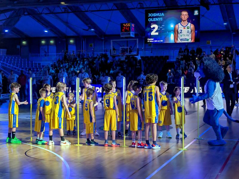 U10 und U12 Basketball Jugend als Einlaufkinder bei den PSK Lions.