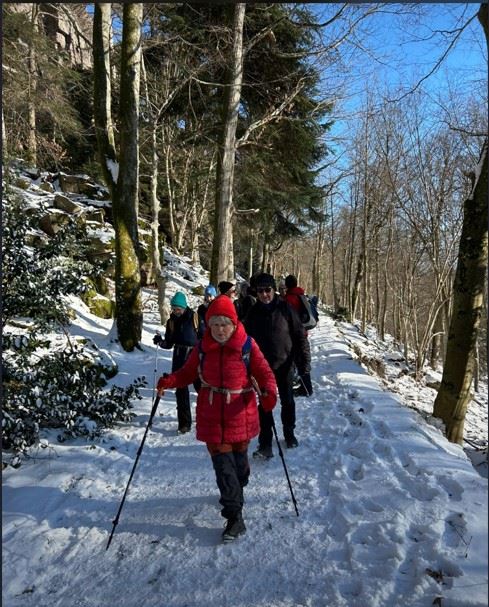 Am 05.01.26 hat die Gruppe FitMix eine Wanderung über Stock und Stein und vor allem Schnee durchgeführt. Diese führte vom Wanderparkplatz Wolfsschlucht zuerst zur Teufelskanzel.